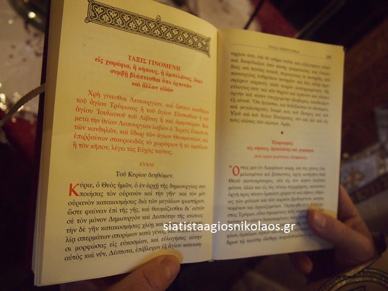 Στο τέλος, ευλόγησαν με τον αγιασμό, τα μέλη του Συλλόγου Αμπελουργών – Οινοπαραγωγών Σιάτιστας «Ο Άγιος Τρύφων» και όλο το εκκλησίασμα.