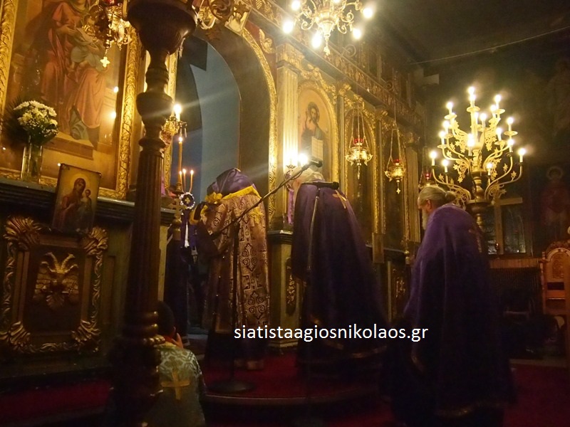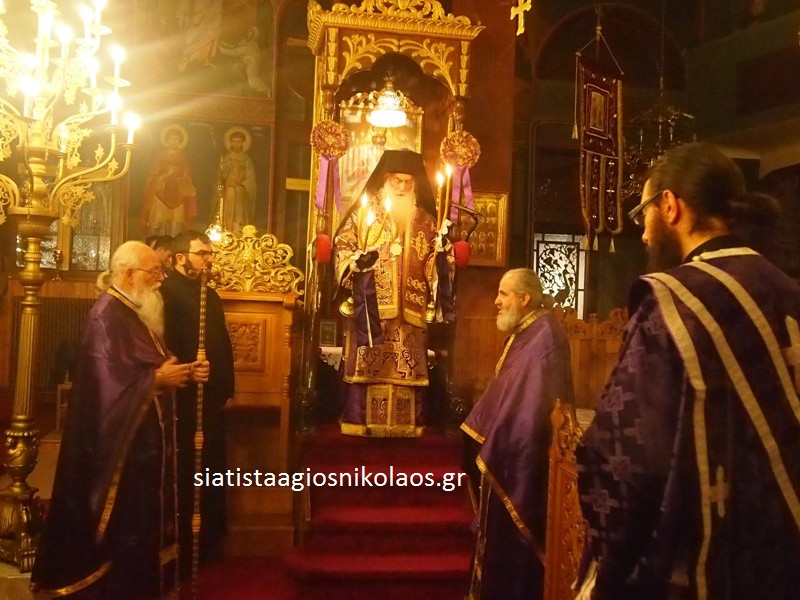 Το βράδυ της Τετάρτης της Α΄ Εβδομάδος των Νηστειών, 1 Μαρτίου 2017, ο Σεβασμιώτατος Μητροπολίτης Σισανίου και Σιατίστης κ. κ. Παύλος τέλεσε την πρώτη Θεία Λειτουργία Προηγιασμένων Τιμίων Δώρων στον Ιερό Ναό του Αγίου Νικολάου Σιάτιστας με τους Ιερείς της Ενορίας π. Βασίλειο και π. Νέστορα, και τον Διάκονο Προκόπιο.