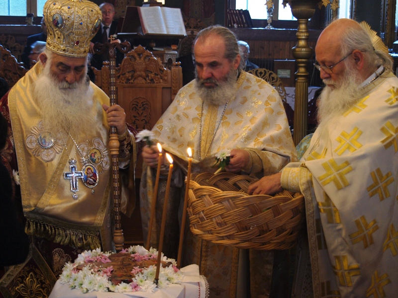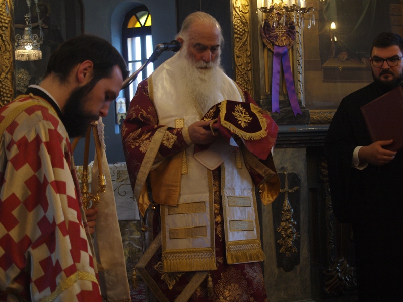 Στην ακολουθία του όρθρου, μετά το ασματικόν «Άγιος ο Θεός…» της δοξολογίας, έγινε η περιφορά του Ιερού Συμβόλου της Ορθοδοξίας μας, του Τιμίου και Ζωοποιού Σταυρού, εντός του Ιερού Ναού και μεταφέρθηκε με σεμνή πομπή στο κέντρο του Ναού.