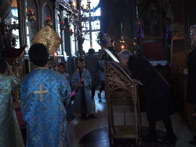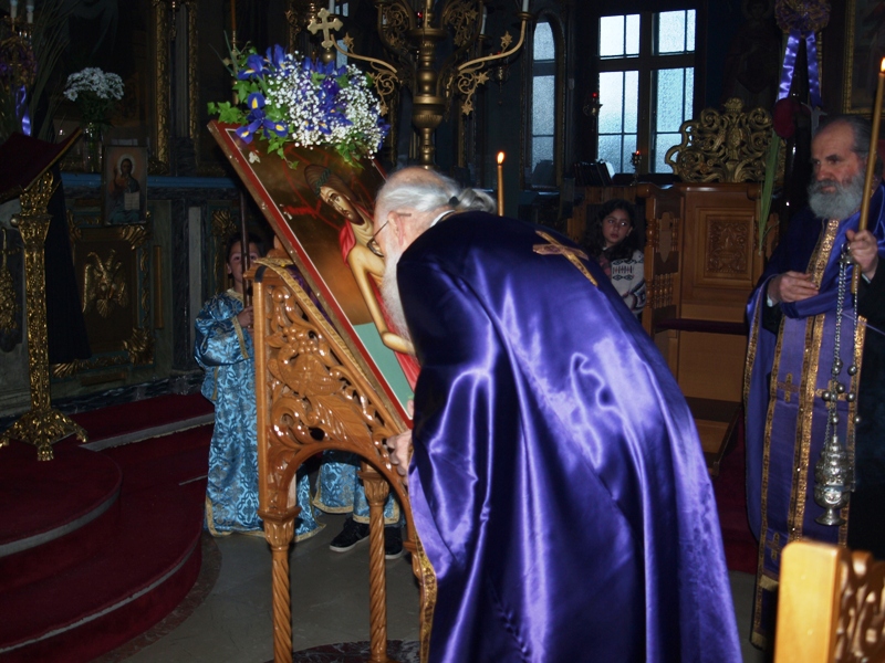 Την ακολουθία τέλεσαν οι Ιερείς του Ναού π. Βασίλειος και π. Νέστορας. Πολλοί ήταν οι πιστοί που προσήλθαν για να παραστούν συμπροσευχόμενοι στην Ιερή αυτή Ακολουθία, η οποία και σηματοδοτεί την έναρξη της Αγίας και Μεγάλης Εβδομάδος, καθώς και να προσκυνήσουν τον Νυμφίο της Εκκλησίας.