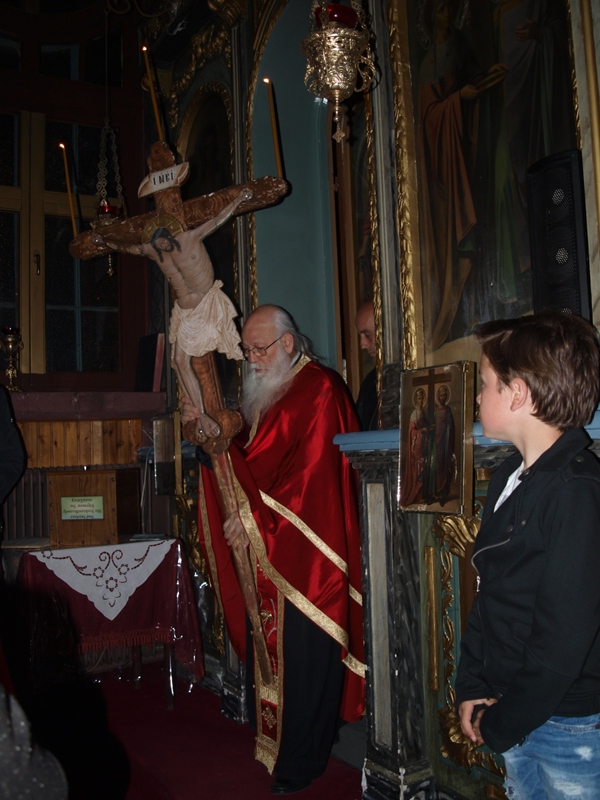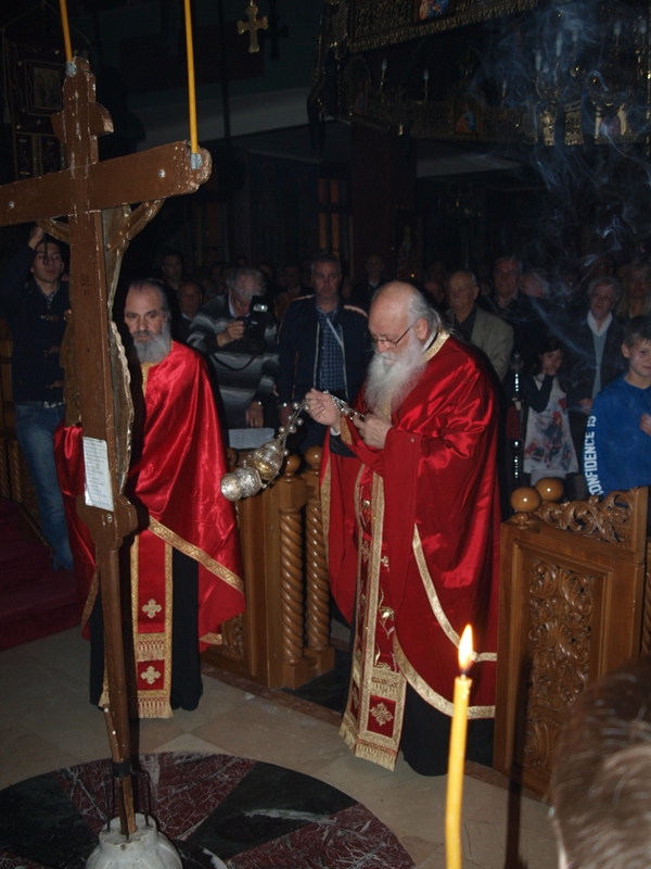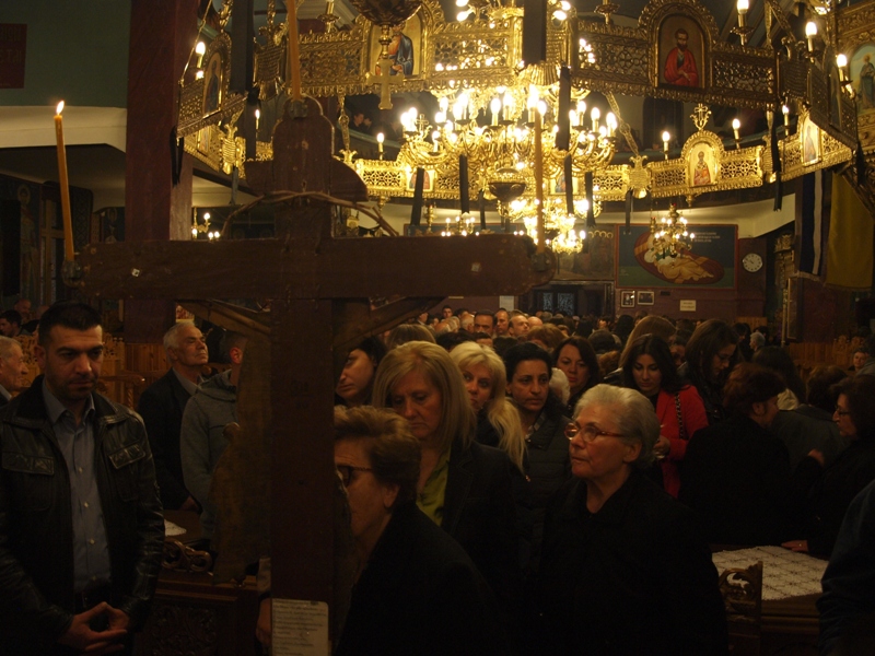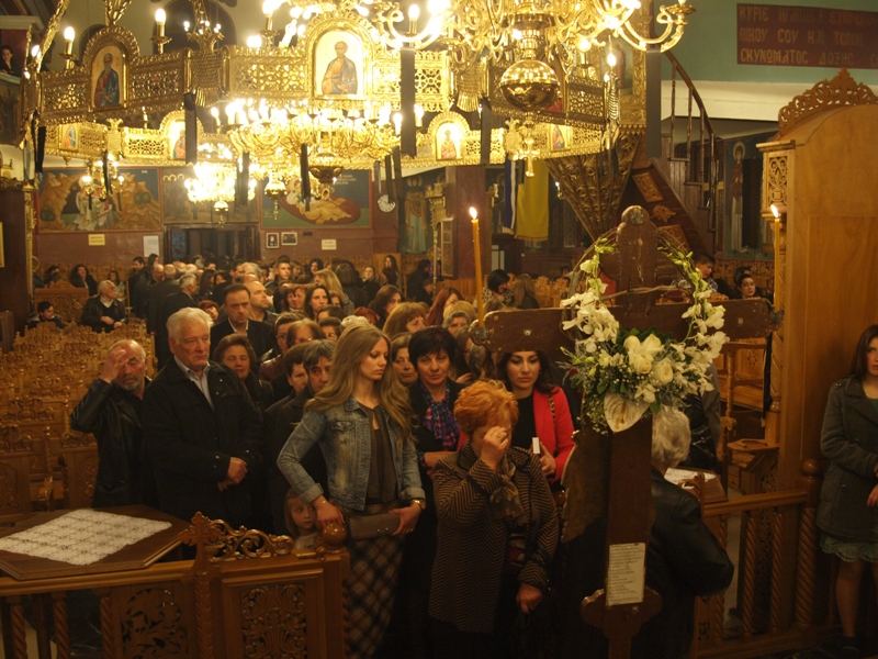 Πλήθος πιστών προσήλθε καθ΄ όλη την διάρκεια της Ιερής Ακολουθίας και συμμετείχε προσευχητικώς ακούγοντας με ευλάβεια τα Δώδεκα Ευαγγέλια και βιώνοντας μέσα από τους κατανυκτικούς ύμνους και τα τροπάρια τα δραματικά εκείνα γεγονότα των Παθών του Κυρίου που συντελέστηκαν για την σωτηρία μας, προσκυνώντας στο τέλος τον Θείο Εσταυρωμένο που εισόδευσε αίροντάς Τον ο π. Βασίλειος, εκφωνώντας το συγκλονιστικό αντίφωνο «Σήμερον κρεμᾶται ἐπί ξύλου…» και θυμιάζοντας ο π. Νέστορας, εναποθέτοντας ενώπιον Αυτού τον Σεβασμό και την Αγάπη τους.