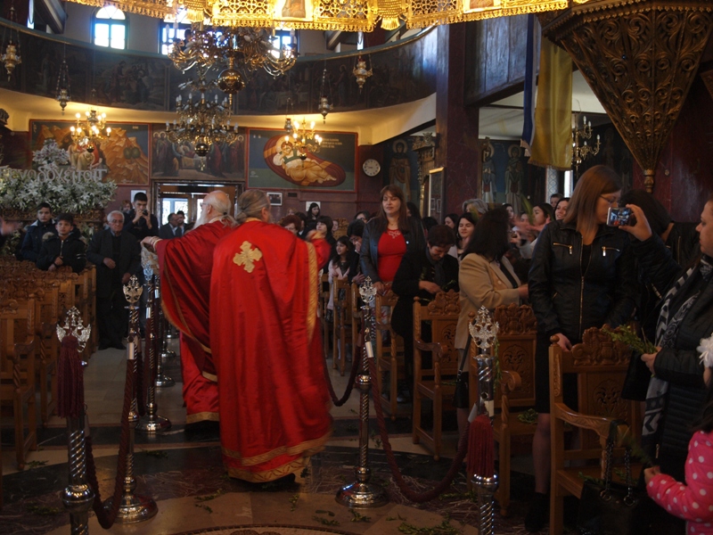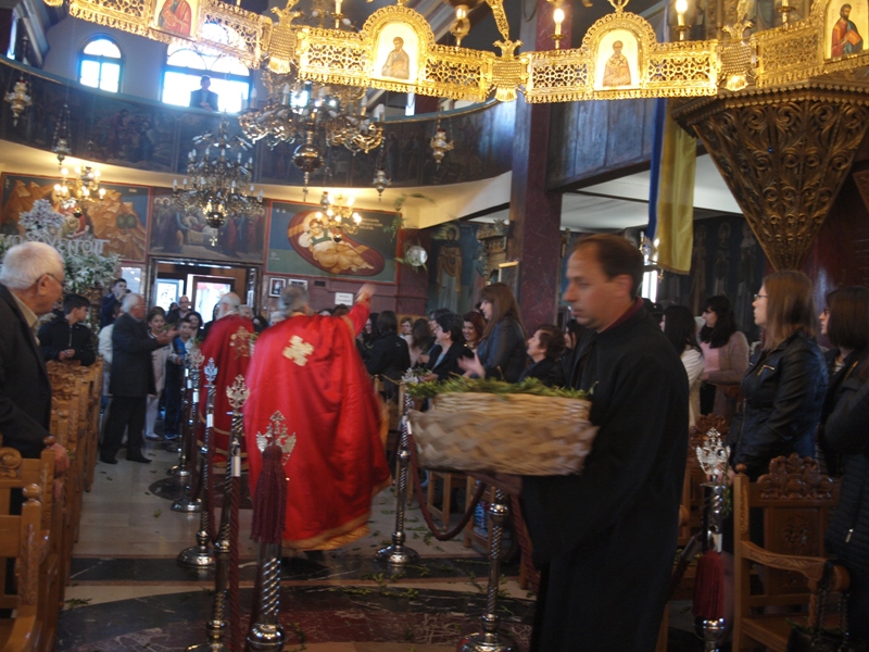 Έγινε η πρώτη Ανάσταση και οι Ιερείς του Ναού π. Βασίλειος και π. Νέστορας ψάλλοντας το: «Ανάστα ο Θεός κρίνων την γην…», πετούσαν βάγια σε όλο το Ναό, ενώ ταυτόχρονα οι πιστοί έκαναν κρότους και θορύβους, κινώντας τις κανδήλες και τους πολυελαίους.