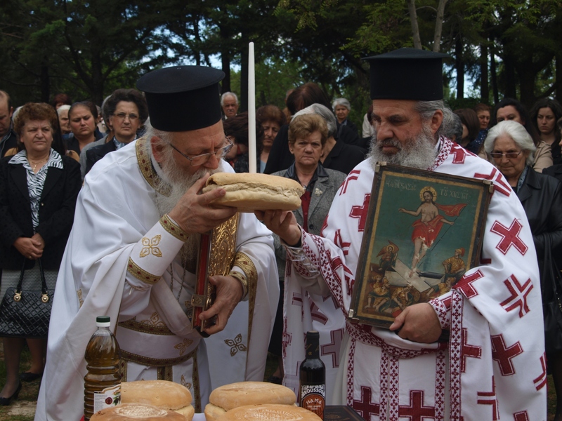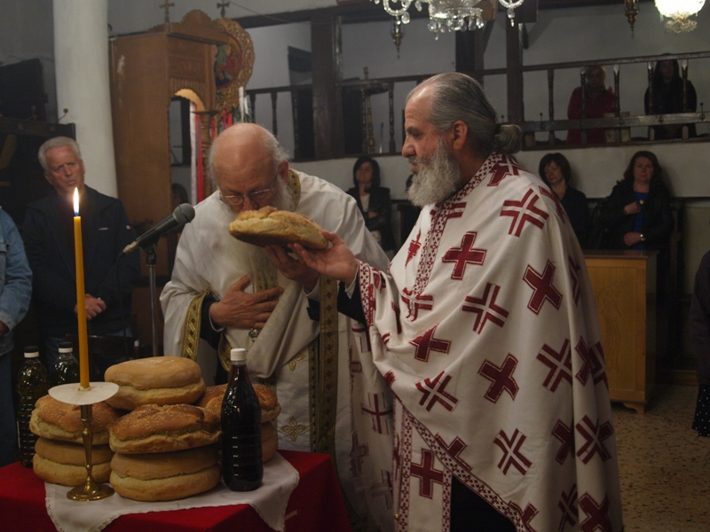 Μετά την λιτάνευση, στον περίβολο του Ναού, μπροστά από την είσοδό του, οι Ιερείς ευλόγησαν τους άρτους που προσέφεραν οι αυτοκινητιστές στον προστάτη τους Άγιο Χριστοφόρο.