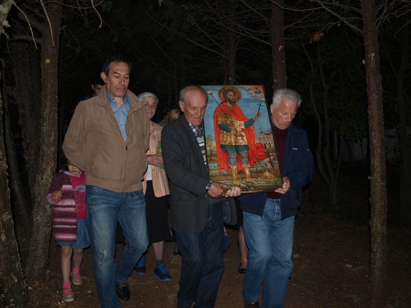 Μετά το πέρας της Θείας Λειτουργίας πραγματοποιήθηκε η λιτάνευση της Ιεράς εικόνος του Αγίου μέσα στο κατάφυτο με δέντρα πανέμορφο αλσύλλιο, που η διαμόρφωσή του είναι αποτέλεσμα προσωπικής προσφοράς και κοπιαστικής εργασίας πολλών εθελοντών και φίλων του Ιερού Ναού και της περιοχής του Αγίου Χριστοφόρου, οι οποίοι με πολλή αγάπη και ενδιαφέρον προστατεύουν και συντηρούν αυτή την καταπράσινη όαση, που μοιάζει με παράδεισο πέριξ του Ιερού Ναού.