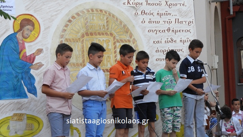 Την Παρασκευή 9 Ιουνίου 2017 το απόγευμα, στο αύλειο χώρο του Ιερού Ναού Αγίου Νικολάου Σιάτιστας, πραγματοποιήθηκε η εορταστική Εκδήλωση, για τη λήξη των μαθημάτων των Κατηχητικών Συνάξεων της Ενορίας του Αγίου Νικολάου Σιάτιστας του κατηχητικού έτους 2016-2017.