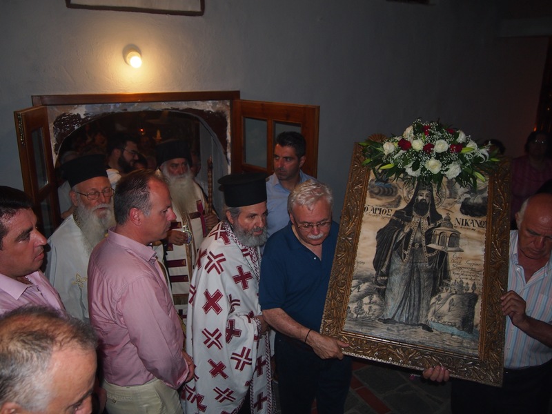 Ακολούθησε η περιφορά της Αγίας εικόνος του Αγίου Νικάνορος μέσα από το κοιμητήριο και γύρω από τον Ιερό Ναό.