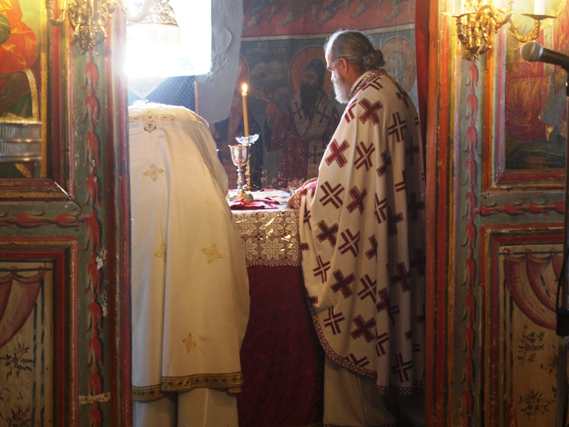 Το πρωί τελέσθηκε ο Όρθρος και στη συνέχεια η Θεία Λειτουργία από τους πρωτοπρεσβυτέρους π. Βασίλειο Βασιλείου και π. Νέστορα Γκουρομίσιο.