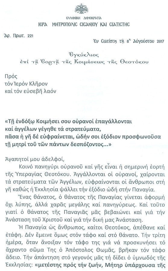 ← Εγκύκλιος «Eπί τη Εορτή της Κοιμήσεως της Υπεραγίας Θεοτόκου» του Σεβασμιωτάτου Μητροπολίτου Σισανίου και Σιατίστης κ. κ. Παύλου