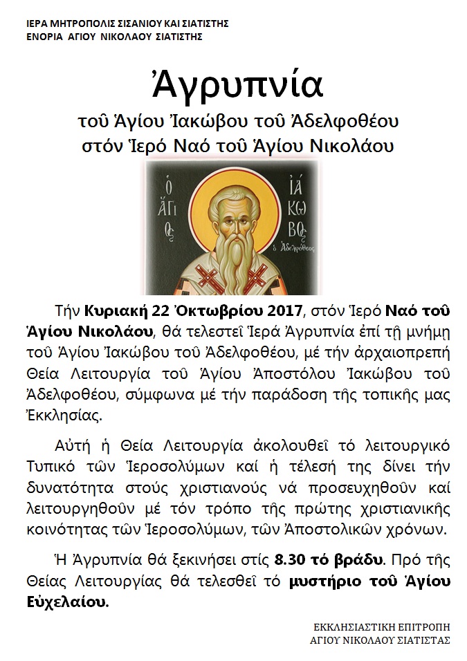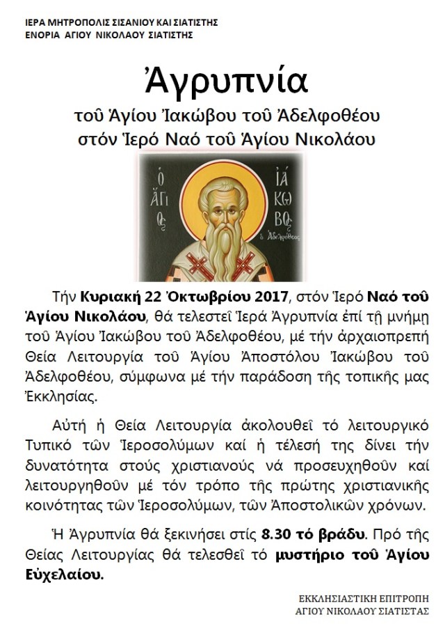 Θεία Λειτουργία επί τη μνήμη του Αγίου Ιακώβου του Αδελφοθέου