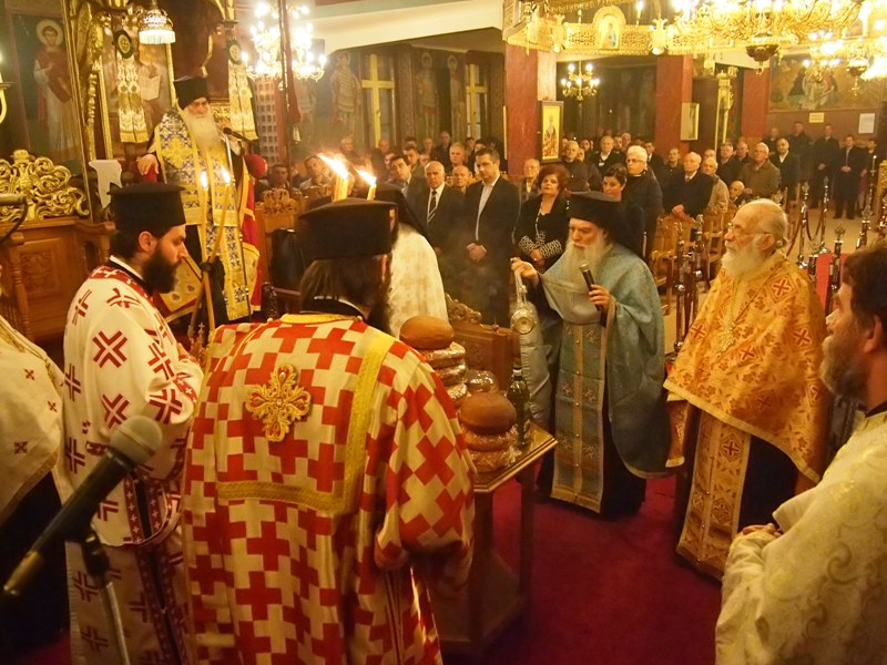 Στον πανηγυρικό Εσπερινό χοροστάτησε ο Σεβασμιώτατος Μητροπολίτης Σισανίου και Σιατίστης κ. κ. Παύλος, ο οποίος και ευλόγησε τους προσφερόμενους άρτους.