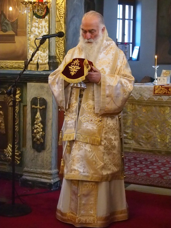 Ευχήθηκε στους εορτάζοντες «να έχουν την ευλογία του Αγίου τους και να τον έχουν οδηγό στην πορεία της ζωής τους. Να προχωράει πριν από μάς, όλες τις μέρες της ζωής μας και να μας οδηγεί στην κατά Θεό ζωή και όλους εμάς».