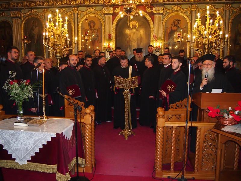 Ο 40μελής Βυζαντινός χορός «Θεσσαλονικείς Υμνωδοί», υπό την διεύθυνση του κ. Ιωάννη Λιάκου, πρωτοψάλτη του Μητροπολιτικού Ναού Θεσσαλονίκης Αγίου Γρηγορίου Παλαμά και Επίκουρου καθηγητή της Ανώτατης Εκκλησιαστικής Ακαδημίας Βελλάς Ιωαννίνων, απέδωσε υπέροχα ένα μουσικό πρόγραμμα 50 λεπτών, με τον μοναδικό τρόπο που πάντοτε τον διακρίνει.