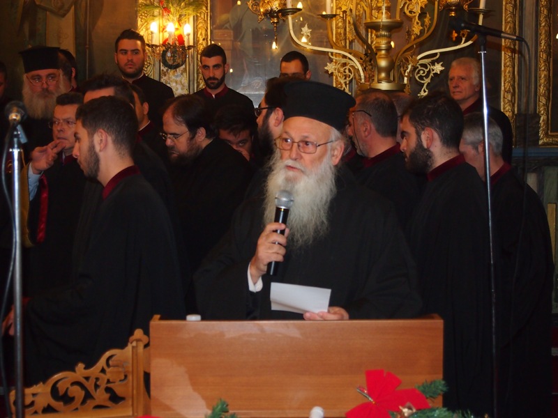 Μετά την άρτια, από όλες τις πλευρές, παρουσίαση του μουσικού μέρους της εκδήλωσης, τον λόγο έλαβε ο π. Βασίλειος, ο οποίος συνεχάρη και ευχαρίστησε την χορωδία για την παρουσία της στην εκδήλωση και την ωραία και επιτυχή απόδοσή της. «Συνδύασαν», όπως είπε, «το μεγαλοπρεπές με το κατανυκτικό. Ήταν μία μυσταγωγία ακούγοντας αυτούς τους ύμνους, νοιώσαμε περισσότερο τον Άγιο Νικόλαο αλλά και μας βοήθησαν να ετοιμαστούμε καλύτερα για την μεγάλη γιορτή των Χριστουγέννων». Τέλος ευχήθηκε να έχουν πάντα επιτυχίες όπου και αν πηγαίνουν.