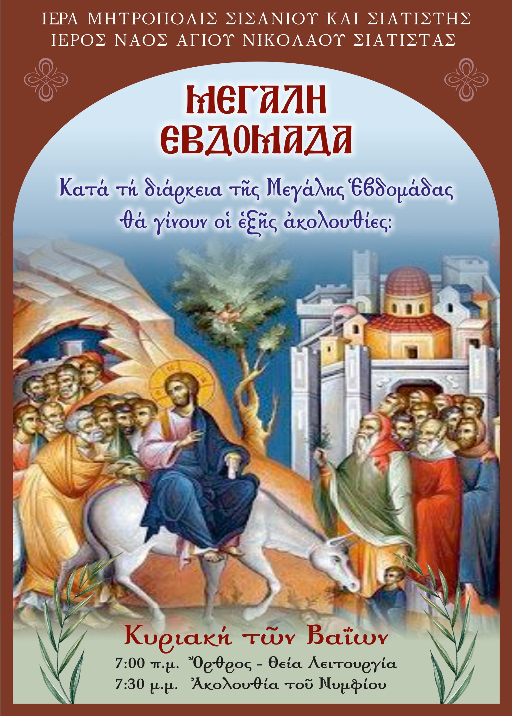 Πρόγραμμα τῆς Μεγάλης Ἑβδομάδας στήν ἐνορία τοῦ Ἁγίου Νικολάου.