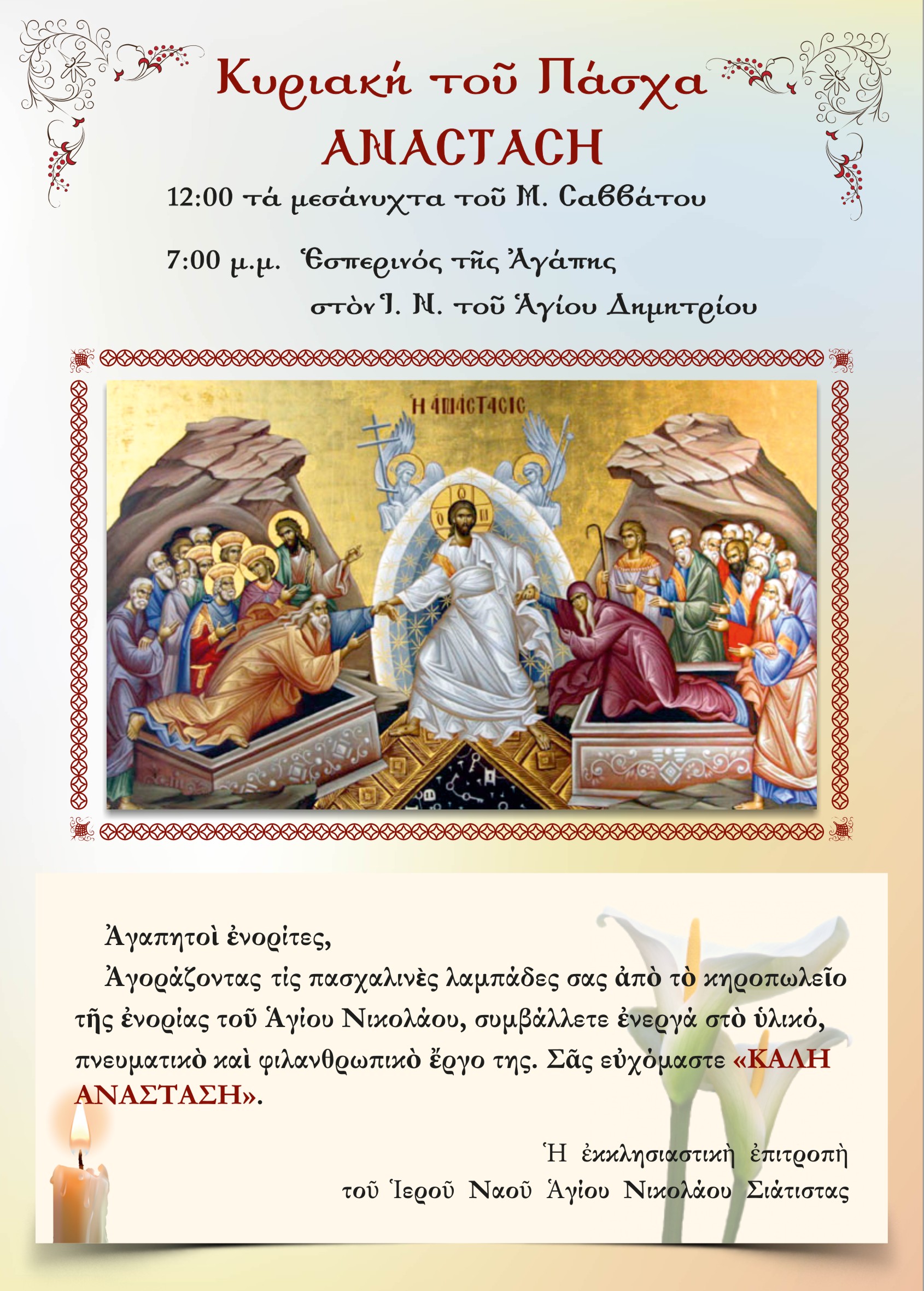 Πρόγραμμα τῆς Μεγάλης Ἑβδομάδας στήν ἐνορία τοῦ Ἁγίου Νικολάου.