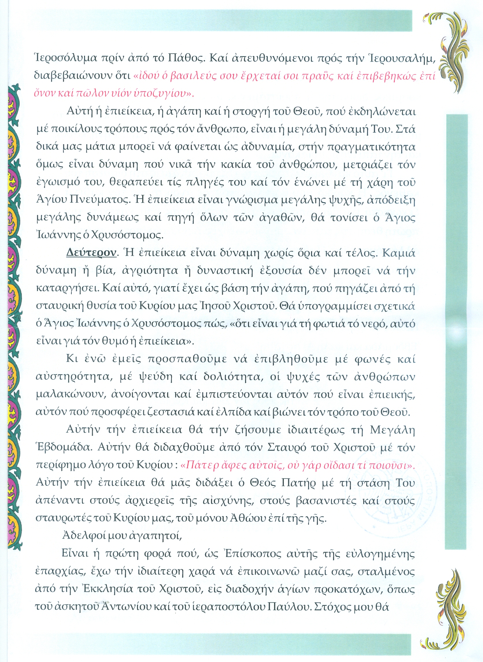 Ἐγκύκλιος Ποιμαντορική ἐπί τῇ Κυριακῇ τῆς Βαϊοφόρου.
