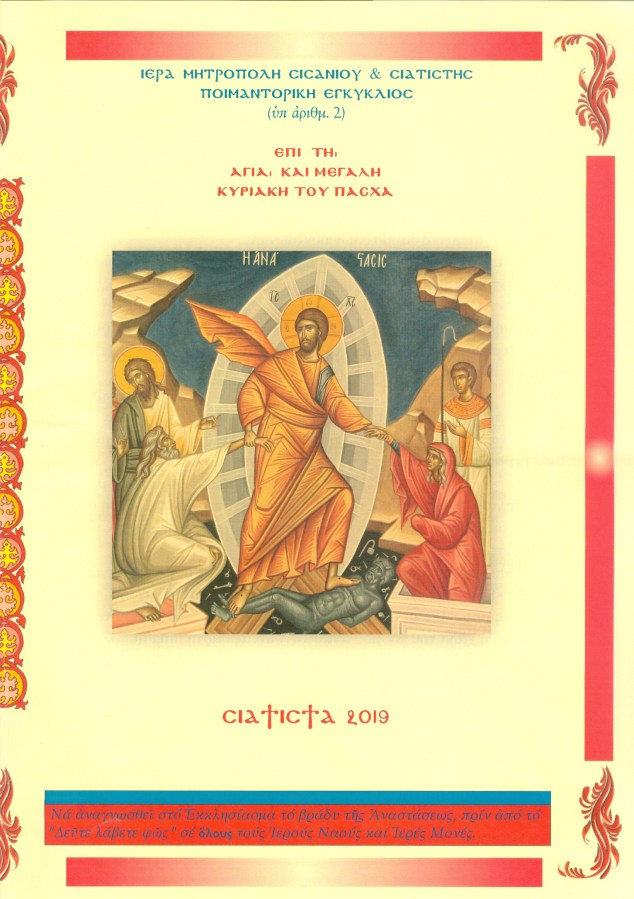 Ἐγκύκλιος ἐπί τῇ Ἁγία καί Μεγάλη Κυριακῇ του Πάσχα.