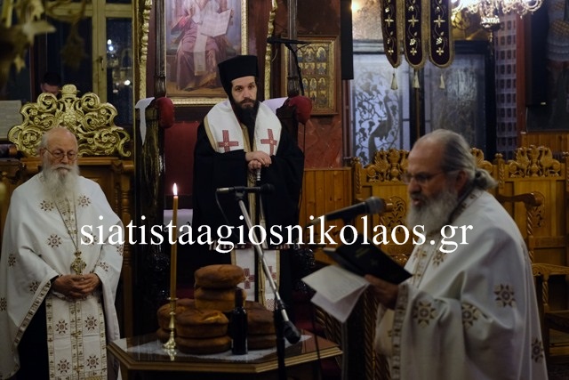 Πριν το τέλος του εσπερινού ο Σεβασμιώτατος ευλόγησε τους άρτους, τον οίνον, τον σίτον και το έλαιον.
