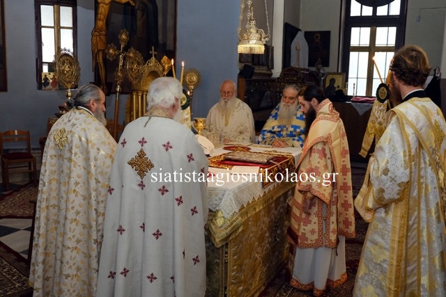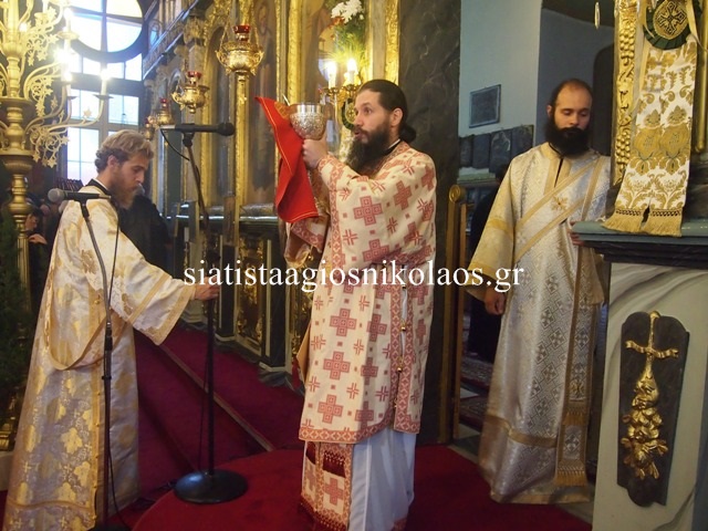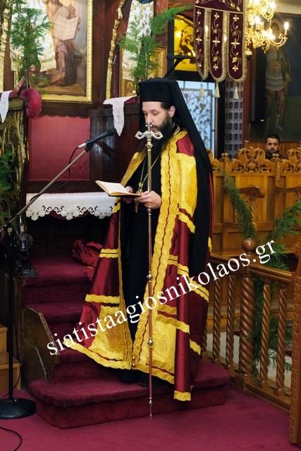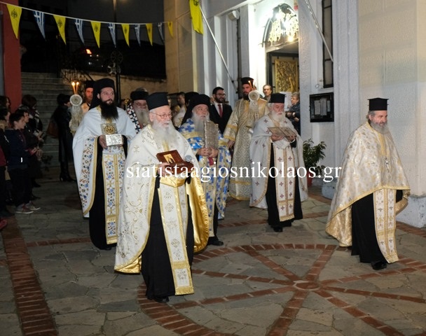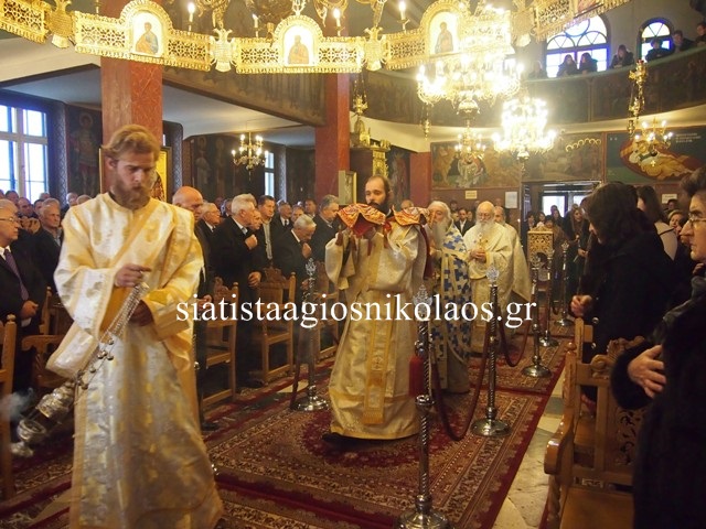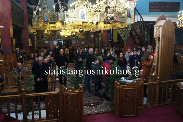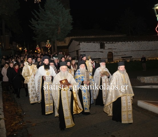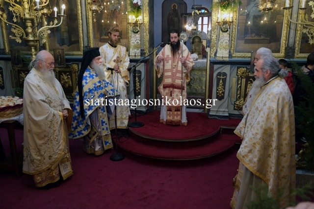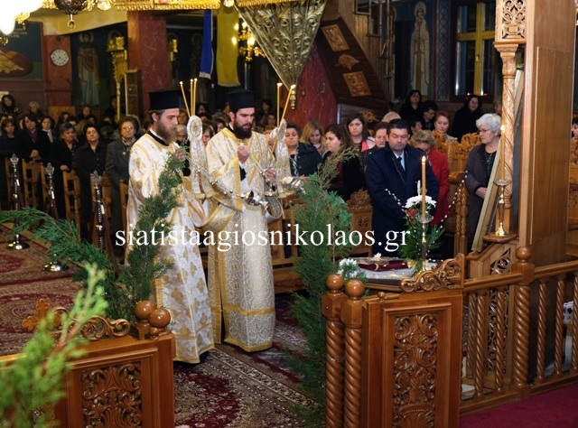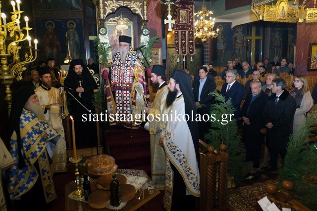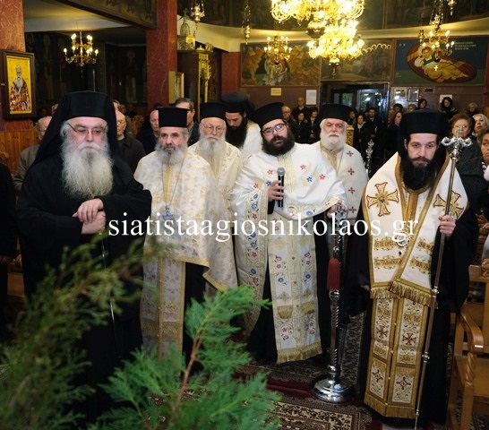 Την Πέμπτη 5 Δεκεμβρίου 2019 το απόγευμα, τελέστηκε Πανηγυρικός Εσπερινός όπου προεξήρχε ο Σεβασμιώτατος Μητροπολίτης Καστορίας κ.κ. Σεραφείμ, συνευχομένου του Σεβασμιωτάτου Μητροπολίτου μας Σισανίου και Σιατίστης κ.κ. Αθανασίου και πλαισιούμενοι από πολλούς Ιερείς της Μητροπόλεώς μας και από τον πιστό λαό της Σιάτιστας. Πριν την ακολουθία του Εσπερινού ο Σεβασμιώτατος Μητροπολίτης Καστορίας κ.κ. Σεραφείμ με τους Ιερείς υποδέχθηκαν το Τίμιο Λείψανο του Αγίου Νικολάου, προερχόμενο από την Ιερά Μονή Κοιμήσεως Θεοτόκου Μικροκάστρου. Στη συνέχεια κατευθύνθηκαν όλοι μαζί στον Ιερό Ναό, όπου εψάλη ο Μέγας Αρχιερατικός εσπερινός μετά αρτοκλασίας.