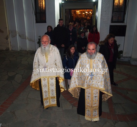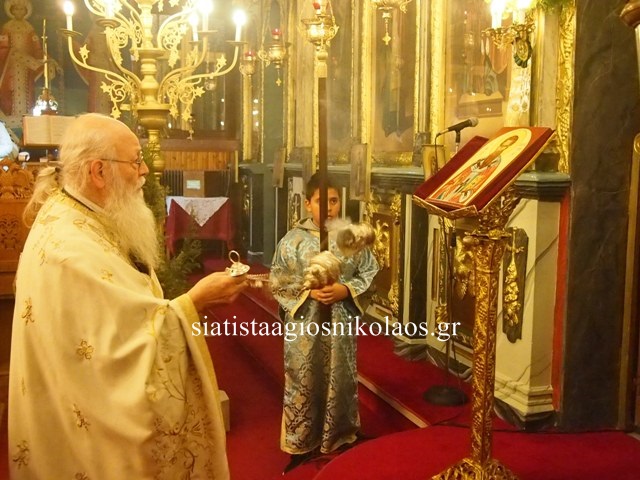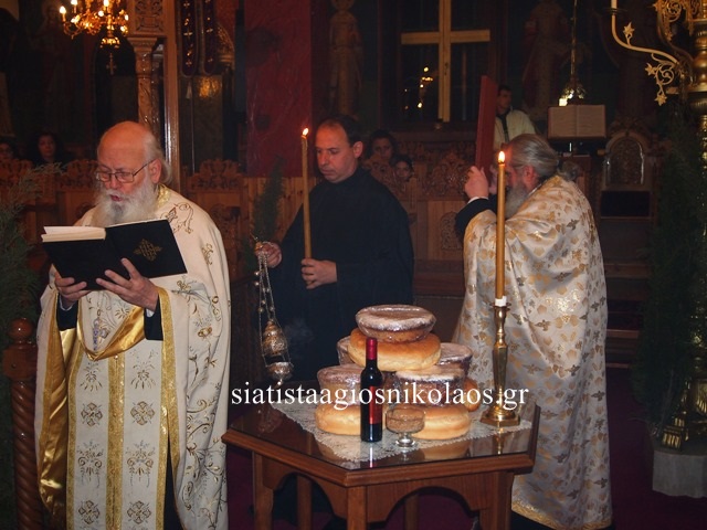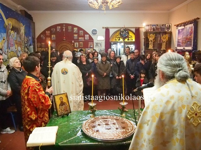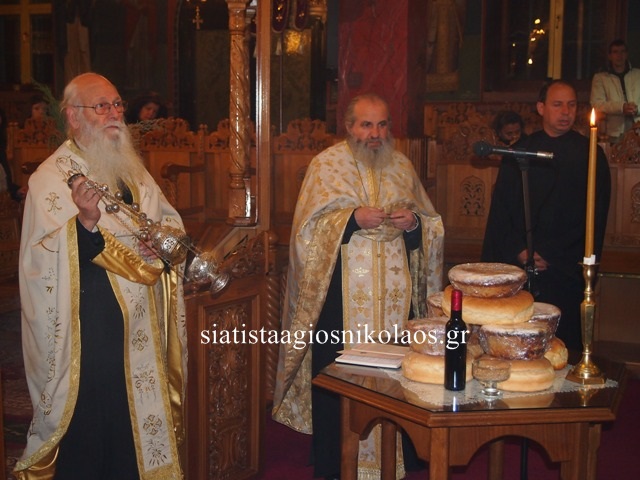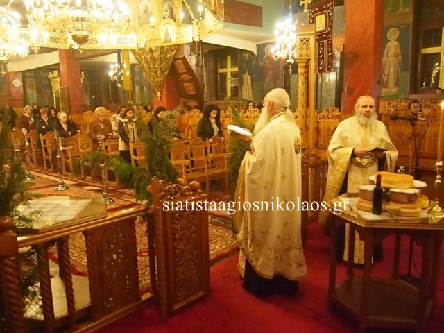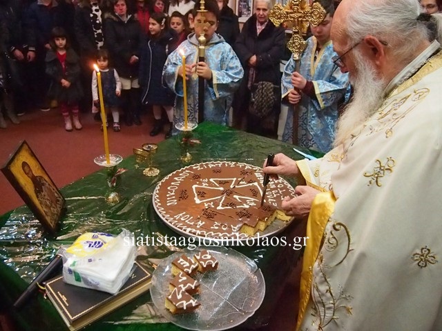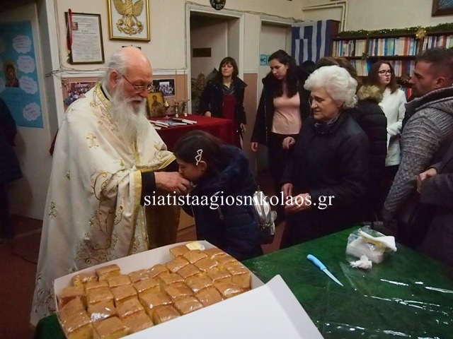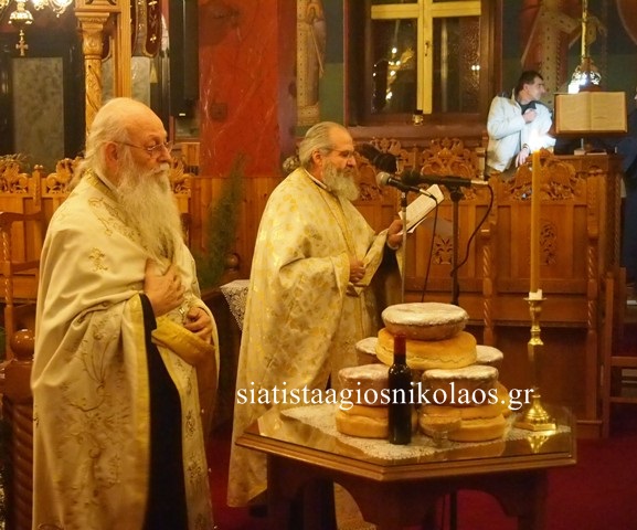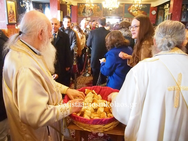 Το απόγευμα της Τρίτης 31 Δεκεμβρίου 2019, τελέσθηκε στον Ιερό Ναό Αγίου Νικολάου ο Μέγας Πανηγυρικός εσπερινός μετά αρτοκλασίας από τους Ιερείς π. Βασίλειο και π. Νέστορα και πλήθος πιστών, οι οποίοι έσπευσαν να τιμήσουν τον μεγάλο αυτό Ιεράρχη της Εκκλησίας.