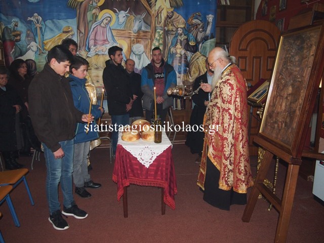 Το απόγευμα της Τετάρτης της 1ης Ιανουαρίου 2020, εψάλη ο μέγας πανηγυρικός εσπερινός μετ’ αρτοκλασίας από τους Ιερείς π. Βασίλειο, π. Νέστορα και π. Χαράλαμπο.