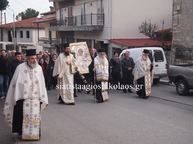 Με την συνοδεία της Φιλαρμονικής του Δήμου Βοΐου, κατευθύνθηκαν όλοι στον Ιερό Ναό του Αγίου Νικολάου, για να την προσκυνήσουν και ευλογηθούν. Ο Σεβασμιώτατος κ.κ. Σεραφείμ, επειδή θα έφευγε για την πόλη της Καστοριάς, μίλησε με λίγα λόγια προς τους πιστούς, χάρηκε με την παρουσία πολλών πιστών στην υποδοχή της Αγίας Εικόνας και ευχήθηκε να περάσουμε μία ευλογημένη περίοδο της τεσσαρακοστής και να φθάσουμε στο ευλογημένο Πάσχα, να εορτάσουμε το μεγάλο γεγονός της Αναστάσεως του Κυρίου μας Ιησού Χριστού.