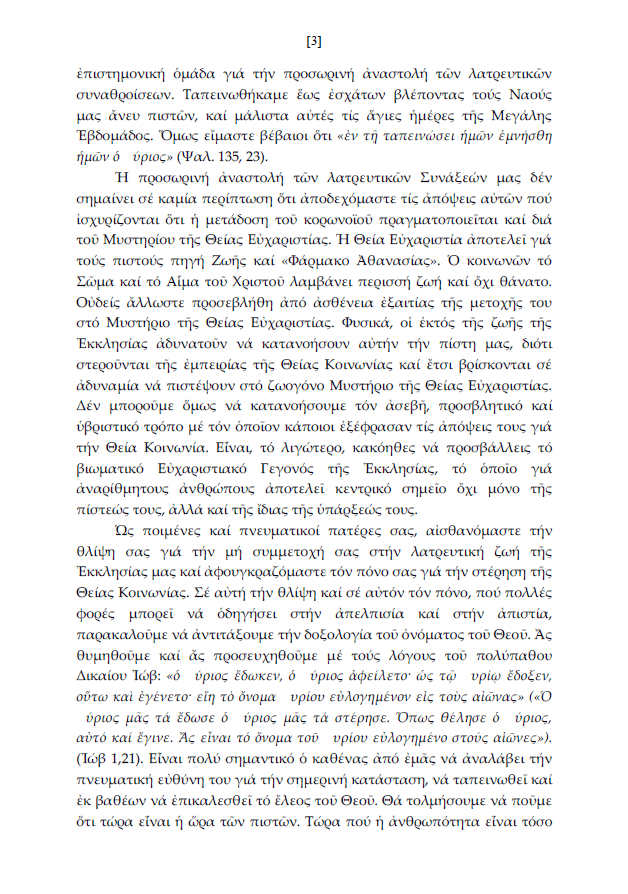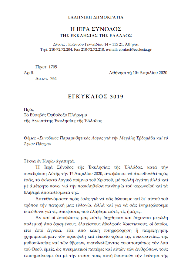 ΕΓΚΥΚΛΙΟΣ 3019 «Συνοδικός Παραμυθιτικός Λόγος για την Μεγάλη Εβδομάδα και το Άγιον Πάσχα».