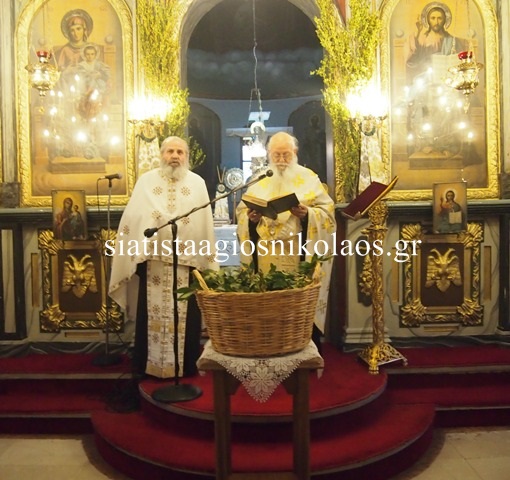 Την παραμονή της Κυριακής των Βαΐων προ της απολύσεως του εσπερινού, οι Ιερείς του Ιερού Ναού πρωτοπρεσβύτεροι π. Βασίλειος και π. Νέστωρ διάβασαν την ευχή για την ευλογία των βαΐων, επειδή οι πιστοί προσέρχονται από βαθειά χαράματα την Κυριακή το πρωί να πάρουν βάγια, για να τα πηγαίνουν στο κοιμητήριο και να τα αποθέτουν επάνω στους τάφους, στα κουτιά και τα συρτάρια των οστών των κεκοιμημένων.