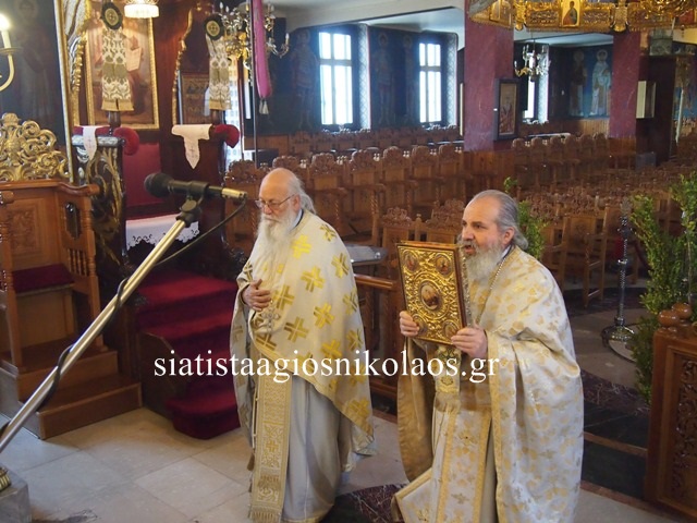 Κατά τον όρθρο και την Θεία Λειτουργία ιερούργησαν οι πρωτοπρεσβύτεροι π. Βασίλειος Βασιλείου και π. Νέστωρ Γκουρομίσιος. Προ του κοινωνικού ο π. Βασίλειος διάβασε την Εγκύκλιο της Ιεράς Συνόδου, τον«Συνοδικό Παραμυθητικό Λόγο, για την Μεγάλη Εβδομάδα και το Άγιον Πάσχα».