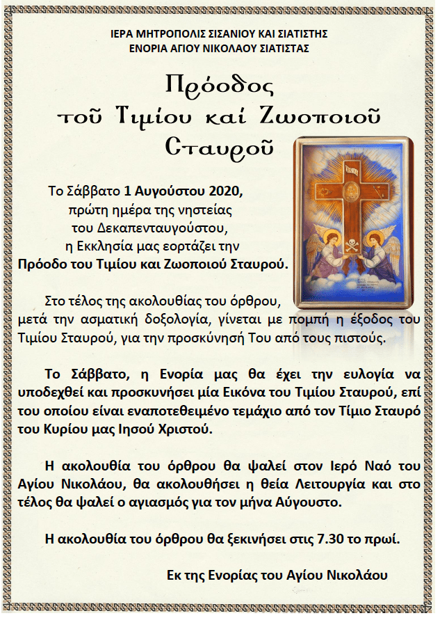 Ἡ Ἐνορία τοῦ Ἁγίου Νικολάου ὑποδέχεται γιά προσκύνηση εἰκόνα τοῦ Τιμίου Σταυροῦ μέ τεμάχιο Τιμίου Ξύλου ἀπό τόν Σταυρό τοῦ Κυρίου μας Ἰησοῦ Χριστοῦ.