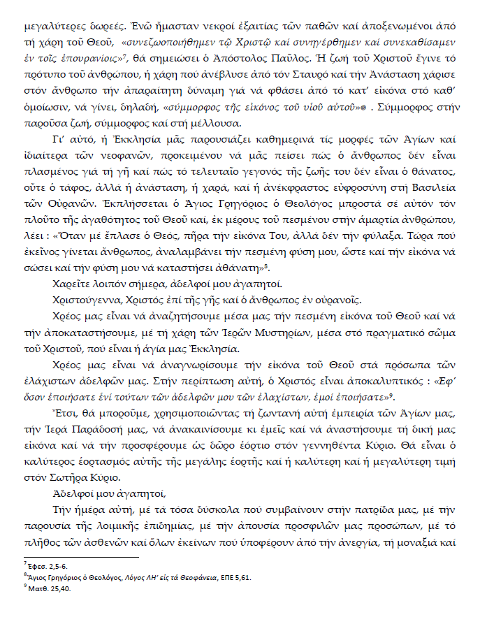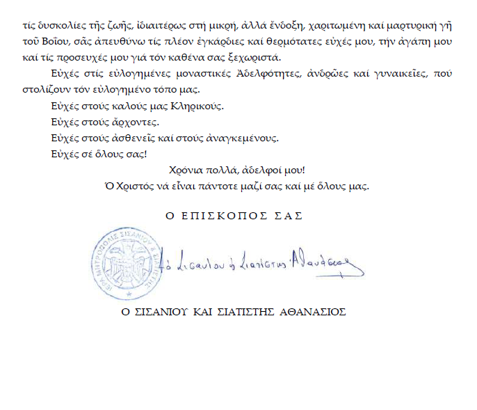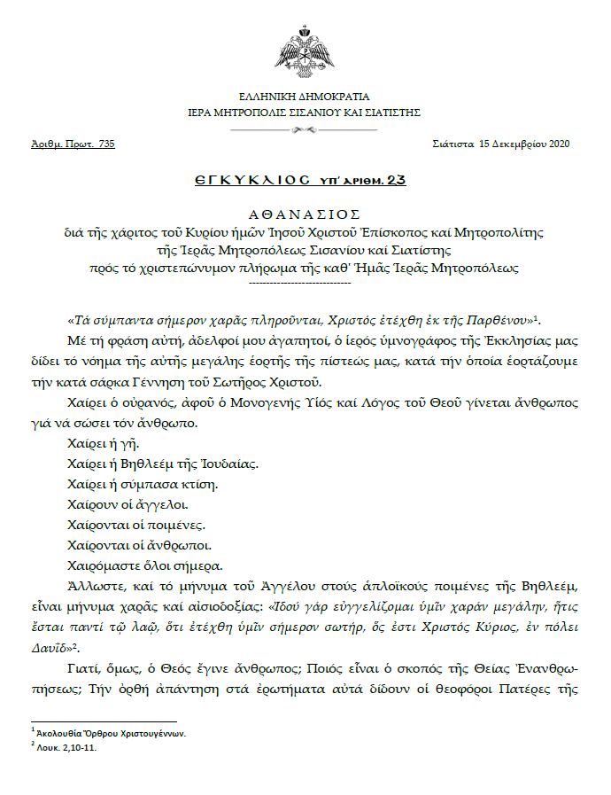 Ἐγκύκλιος τοῦ Σεβασμιωτάτου Μητροπολίτου Σισανίου καί Σιατίστης κ.κ. Ἀθανασίου ἐπί τῇ ἑορτῇ τῶν Χριστουγέννων.