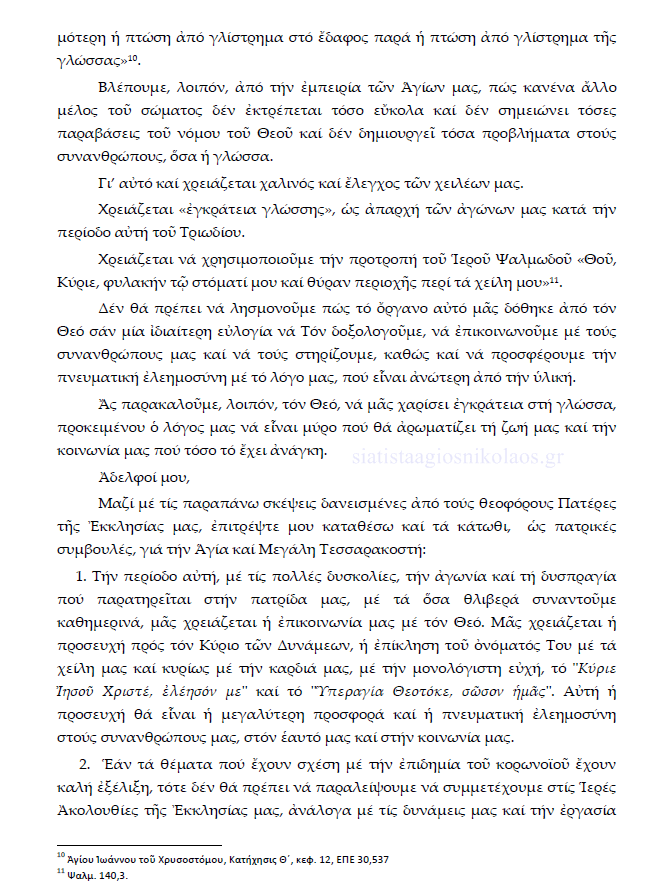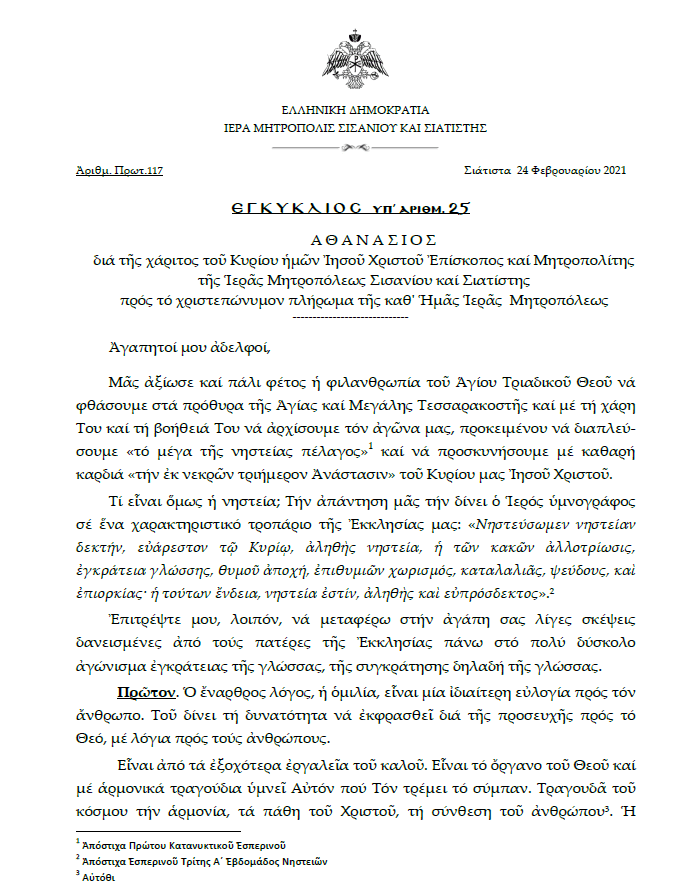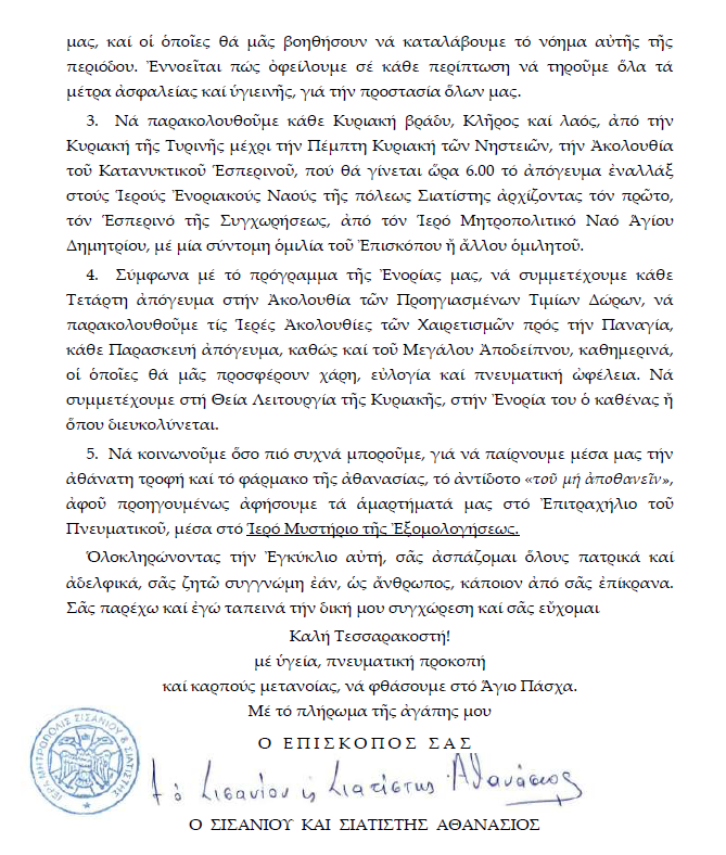 • Ἐγκύκλιος τοῦ Σεβασμιωτάτου Μητροπολίτου Σισανίου καί Σιατίστης κ.κ. Ἀθανασίου.