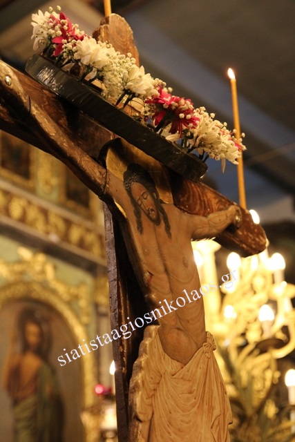 Το βράδυ της ίδιας μέρας, κατά την διάρκεια της ιερής ακολουθίας, ψάλλονται σε τρεις στάσεις τα εγκώμια στον νεκρό Ιησού Χριστό.