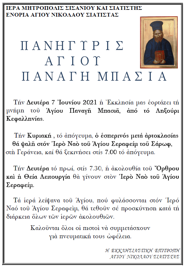 Η εορτή του Αγίου Ιερέως Παναγή Μπασιά από το Ληξούρι Κεφαλληνίας στην Ενορία του Αγίου Νικολάου Σιάτιστας.