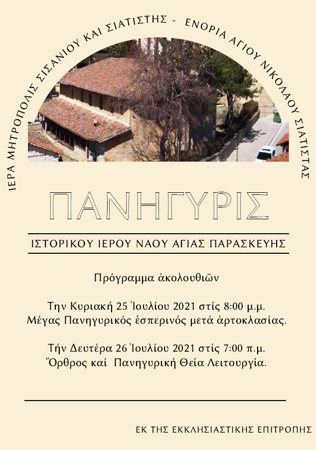 Πανήγυρις Ἱστορικοῦ Ἱεροῦ Ναοῦ Ἁγίας Παρασκευῆς Σιάτιστας.