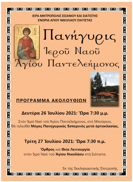 Πανήγυρις Ἱεροῦ Ναοῦ Ἁγίου Παντελεήμονος (Μπούρινο) Σιάτιστας.