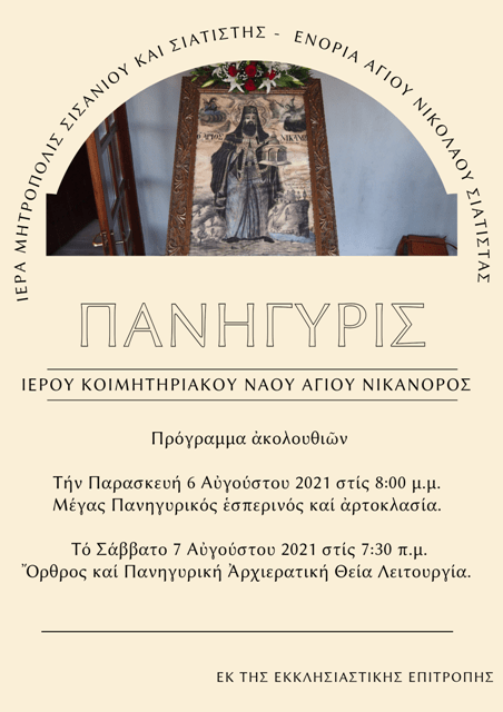 Πανήγυρις του κοιμητηριακού Ιερού Ναού Αγίου Νικάνορος στην ενορία του Αγίου Νικολάου Σιάτιστας.