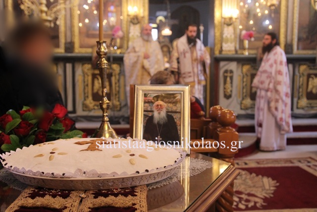 Μετά το πέρας της Θείας Λειτουργίας, στον προαύλιο χώρο του Ναού, μοιράστηκε κόλλυβο και ένα μικρό γλύκισμα εις μνήμην του πατρός Βασιλείου. Ο τάφος του μακαριστού Πρωτοπρεσβυτέρου Βασίλειου Λ. Βασιλείου βρίσκεται στον Ιερό Ναό του Αγίου Νικολάου όπου διακόνησε επί 40 έτη.