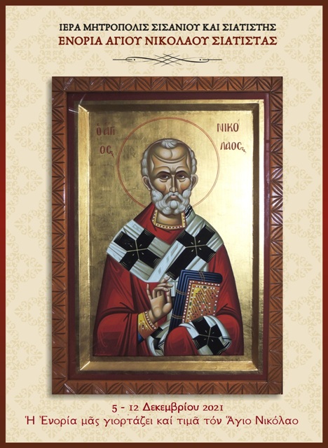 Ἑορτή Ἁγίου Νικολάου τοῦ θαυματουργοῦ. Πρόγραμμα ἐκκλησιαστικῶν ἀκολουθιῶν τῆς Ἐνορίας τοῦ Ἁγίου Νικολάου Σιάτιστας.
