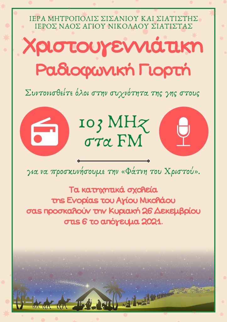 Χριστουγεννιάτικη Ραδιοφωνική Γιορτή των Κατηχητικών Σχολείων της Ενορίας του Αγίου Νικολάου Σιάτιστας.