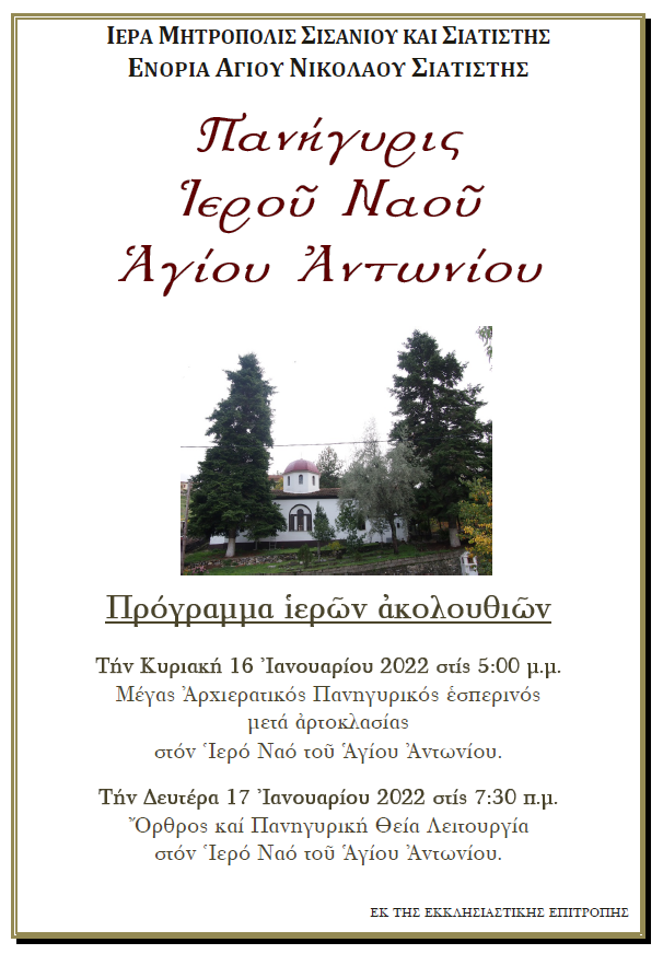 Πανηγυρίζει ο Ιερός Ναός του Αγίου Αντωνίου στη Σιάτιστα