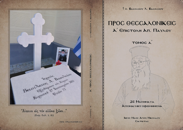 - Δύο βιβλία το ένα «Προς Θεσσαλονικείς Α΄ Επιστολή Αποστόλου Παύλου» απομαγνητοφωνημένα μαθήματα του πατρός Βασιλείου που διανέμεται δωρεάν και μπορείτε να το προμηθευτείτε από το Ενοριακό Πνευματικό Κέντρο και το άλλο βιβλίο ήταν μια ευγενική προσφορά των εκδόσεων «Ορθόδοξος Κυψέλη» εις μνήμην του πατρός Βασιλείου για την τόσα χρόνια συνεργασία που είχαν.