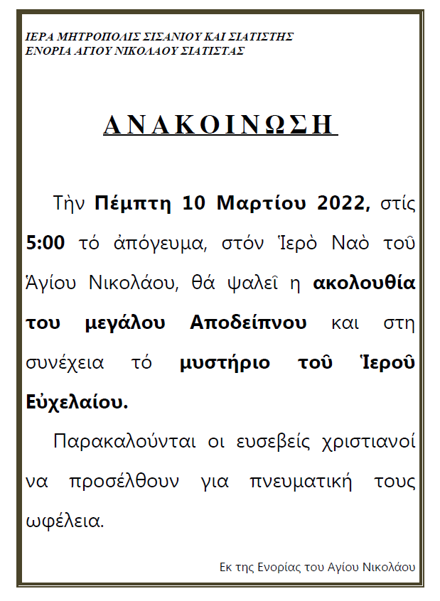 Παρακολουθήστε τις Ακολουθίες του Ι. Ν. Αγ. Νικολάου μέσα από το κανάλι μας στο YouTube (κλικ στο παρακάτω εικονίδιο)
