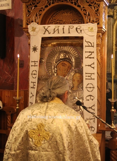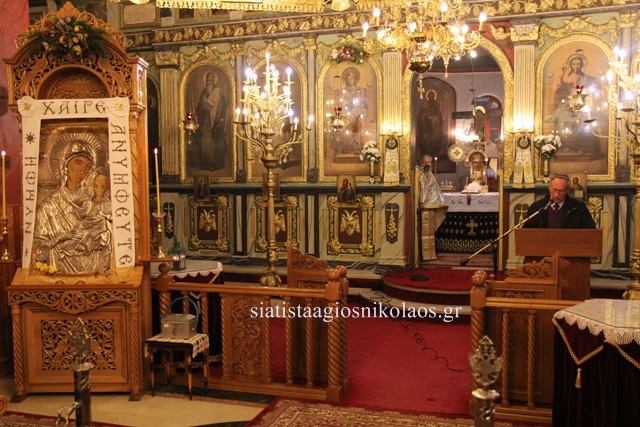 Την Παρασκευή 25 Μαρτίου 2022, το απόγευμα στον Ιερό Ναό του Αγίου Νικολάου Σιάτιστας τελέσθηκε ο εσπερινός της αποδόσεως της Θεομητορικής Εορτής του Ευαγγελισμού της Θεοτόκου από τον Ιερέα π. Νέστορα Γκουρομίσιο και η Γ΄ Στάση των χαιρετισμών προς την Υπεραγία Θεοτόκο ενώπιον της Ιεράς και θαυματουργής εικόνας της Παναγίας της Ελεούσας από την Ιερά Μονή Κοιμήσεως της Θεοτόκου Μικροκάστρου.