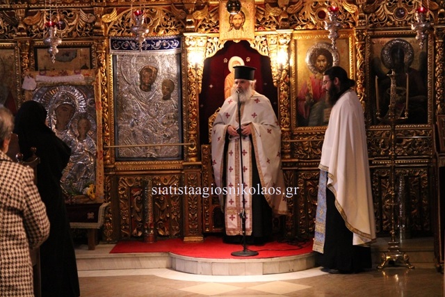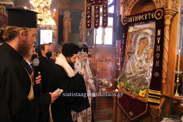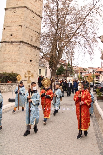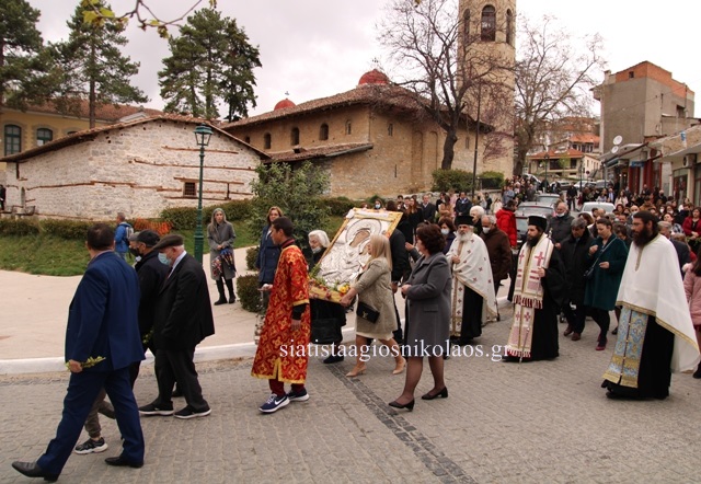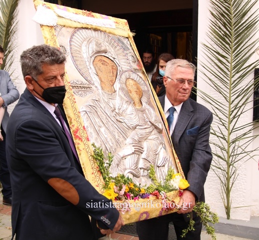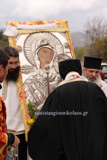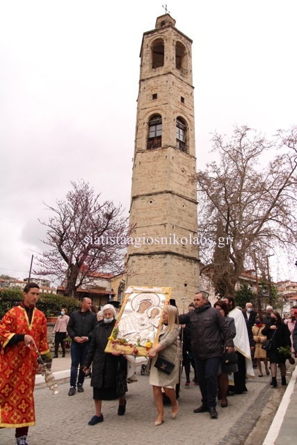 Μετά τη Θεία Λειτουργία ήλθε στον Ναό ο Σεβασμιώτατος Μητροπολίτης Σισανίου και Σιατίστης κ. κ. Αθανάσιος, ο οποίος μαζί με τους ιερείς και πιστούς προέπεμψαν την Αγία εικόνα της Παναγίας Ελεούσας της Μονής Μικροκάστρου στη έξοδο της πόλης, στο κοιμητήριο του Αγίου Νικάνορα. Καθ’ όλη την πορεία ψαλλόταν ο παρακλητικός κανόνας της Θεοτόκου και στην τελευταία στάση ο Επίσκοπος διάβασε το Ιερό Ευαγγέλιο και έγινε δέηση. Ακολούθως οι πιστοί μετέφεραν την Εικόνα με αυτοκινητοπομπή μέχρι το μοναστήρι.