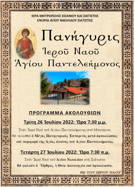 Πανήγυρις Ἱεροῦ Ναοῦ Ἁγίου Παντελεήμονος (Μπούρινο) Σιάτιστας.