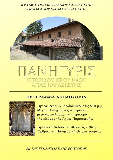 Πανήγυρις Ἱστορικοῦ Ἱεροῦ Ναοῦ Ἁγίας Παρασκευῆς Σιάτιστας.