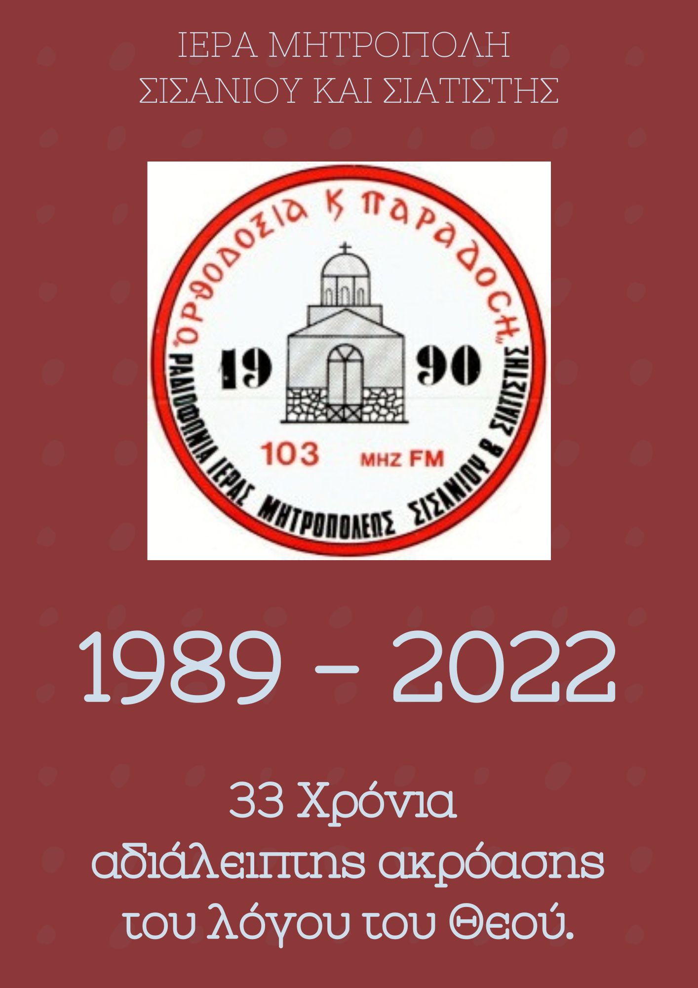 33 χρόνια Ραδιόφωνο «Ορθοδοξία και Παράδοση» της Ιεράς Μητροπόλεως Σισανίου και Σιατίστης. (11 Αυγούστου 1989 – 2022)