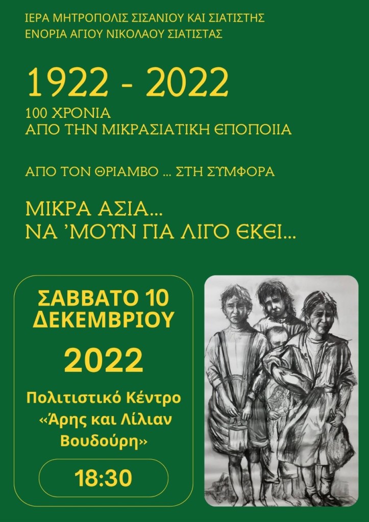 Εκδήλωση Μνήμης για τα 100 χρόνια Μικρασιατικής Εποποιίας στη Σιάτιστα.