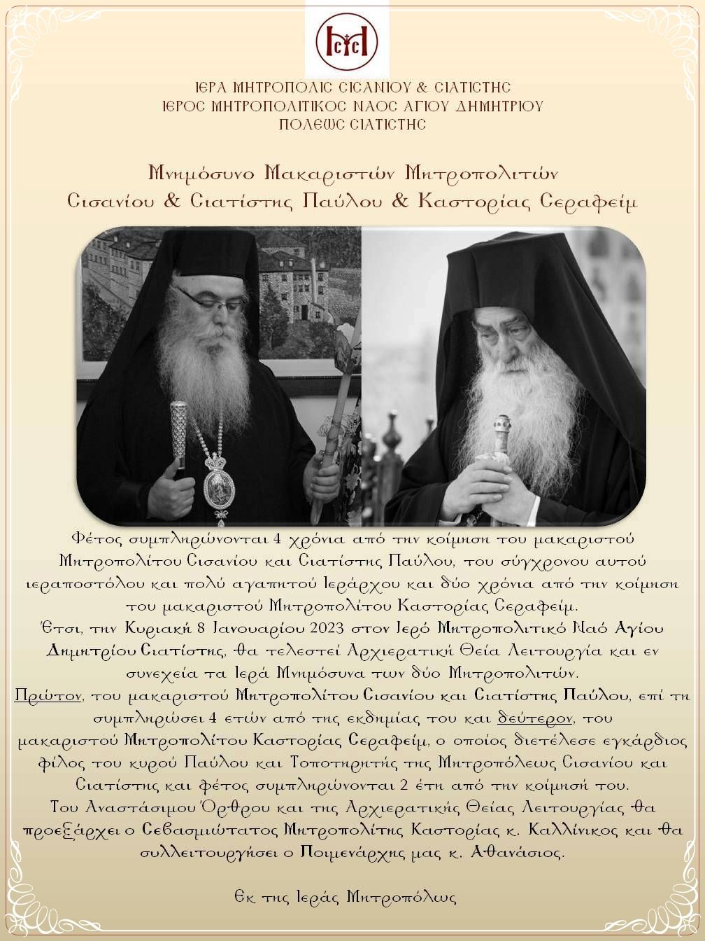 Μνημόσυνο Μακαριστῶν Μητροπολιτῶν Σισανίου καί Σιατίστης κυροῦ Παύλου & Καστορίας κυροῦ Σεραφείμ.